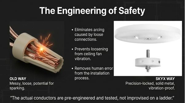 In Part 1, we talked about the problem: ladders, live wires, wire-nuts, and a century‑old installation method that keeps putting people in the hospital.